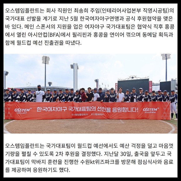 [카드] "한국 여자야구 동반자 오스템임플란트"