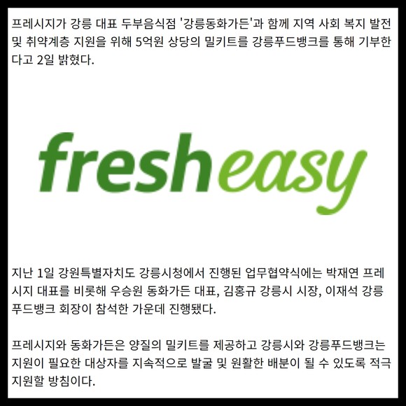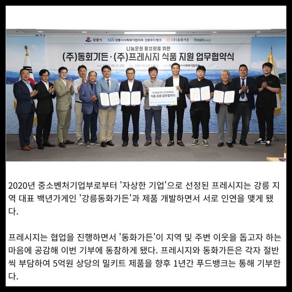 [카드] 프레시지, 강릉 백년가게 '동화가든'과 푸드뱅크에 5억원 기부