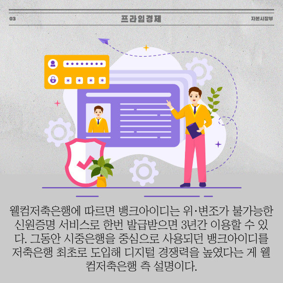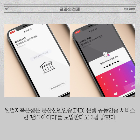 [프라임경제] 웰컴저축은행은 분산신원인증(DID) 은행 공동인증 서비스인 '뱅크아이디'를 도입한다고 3일 밝혔다.