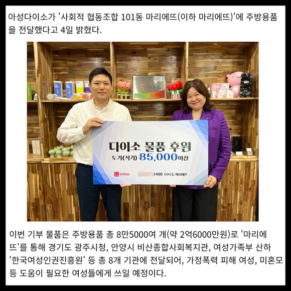 [카드] 아성다이소 '마리에뜨'에 사회취약계층에 주방용품 전달