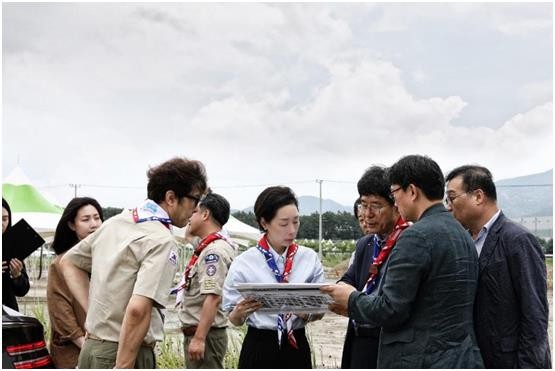지난달 14일 새만금 잼버리 야영장 부지를 찾은 구지은 아워홈 부회장. © 연합뉴스
