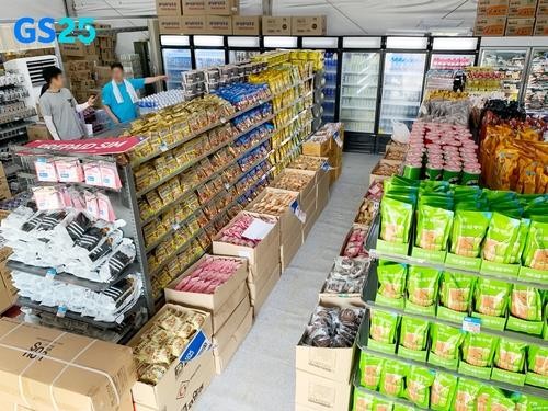 새만금 세계스카우트 잼버리 대회에 편의점을 독점 운영하는 GS25가 바가지 논란이 불거지자 제품 판매가를 낮췄다. 사진은 잼버리 행사장에 마련된 GS25 매장. © 연합뉴스