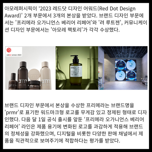[카드] 아모레퍼시픽, 2023 레드닷 디자인 어워드 3개 본상 수상