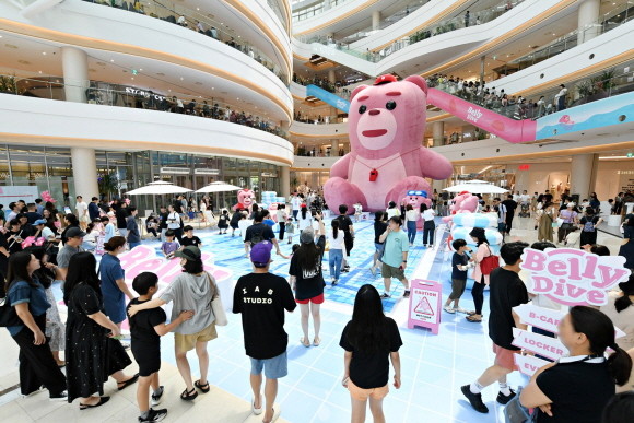 롯데홈쇼핑이 영등포 타임스퀘어에서 진행 중인 '벨리 다이브' 전시. © 롯데홈쇼핑