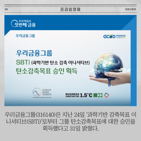 [카드] 우리금융, 탄소감축목표 'SBTi' 승인 획득