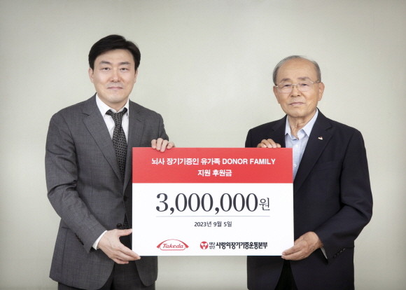한국다케다제약은 △장기 기증과 △장기 이식, 그리고 △장기 이식 후 감염 관리에 대한 대국민 인지도를 높이고자 300만원을 사랑의 장기기증 운동본부에 기부했다. 기부금액에는 국내 누적 장기기증 희망자수(인체조직 및 조혈모 세포 포함) 300만명 달성이라는 염원을 담았다.