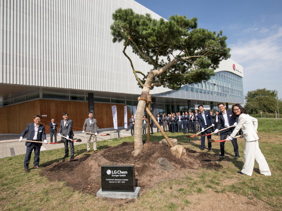 LG화학 및 프랑크푸르트 관계자들이 유럽 CS센터에서 기념 식수를 진행하고 있다. ⓒ LG화학