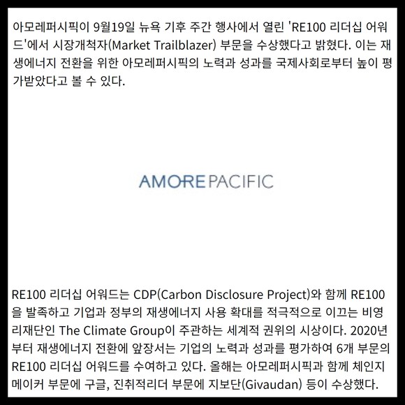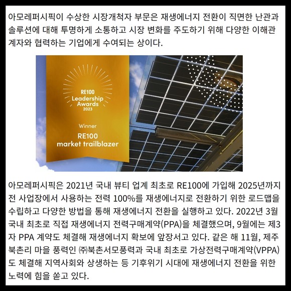 [카드] 아모레퍼시픽, RE100 리더십 어워드 수상