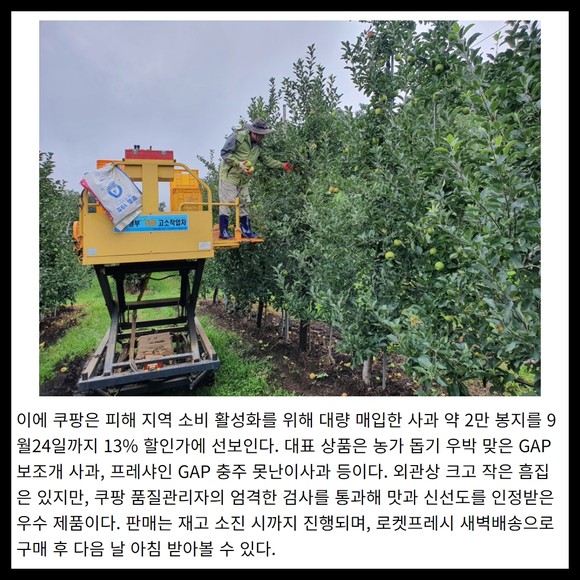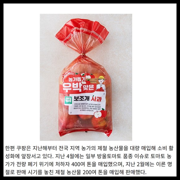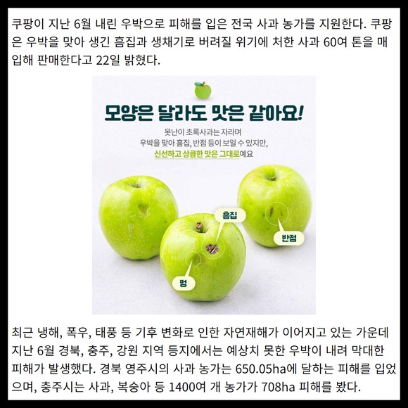 [카드] 쿠팡 '우박 사과' 60톤 매입 "사과 농가 지원"