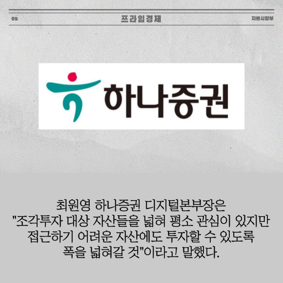 [프라임경제] 하나증권은 오아시스 비즈니스와 상업용 부동산 조각투자 플랫폼 출시를 위한 업무협약(MOU)을 체결했다고 6일 밝혔다.