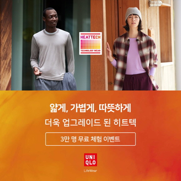 유니클로(UNIQLO)가 기온이 떨어지는 시즌을 맞이해 자사 대표 기능성 흡습발열 의류인 히트텍(HEATTECH) 제품 3만 장을 체험할 수 있는 이벤트를 10월22일까지 실시한다.