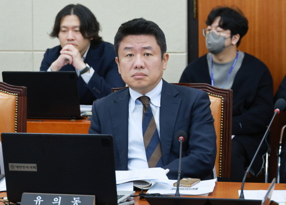 유의동 국민의힘 의원이 16일 열린 국회 정무위원회 공정거래위원회 대상 국정감사에 참석해 CJ올리브영의 독점적 지위 남용 사태가 심각하다며 한기정 공정위원장에게 문제개선을 요구했다. © 연합뉴스