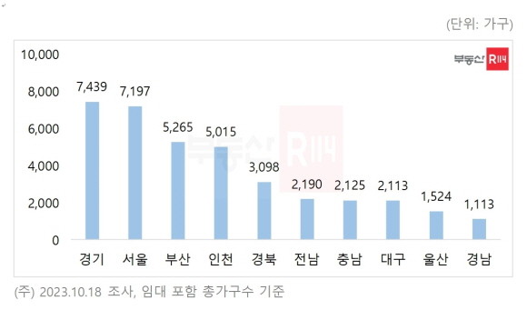 시도별 아파트 입주물량은 △경기 7439가구 △서울 7197가구 △부산 5265가구 △인천 5015가구 △경북 3098가구 순으로, 지역별 편차가 그리 크지 않다. 이중 경기는 △안양 2886가구 △양주 1624가구 △화성 1350가구이며, 인천의 경우 △미추홀구 2277가구 △부평구 1623가구 △남동구 1115가구 등의 물량이 많다.