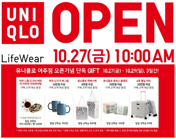 유니클로(UNIQLO)가 10월27일 유니클로 여주점을 오픈한다.