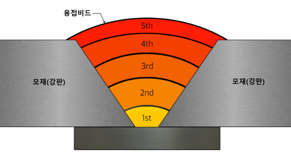 통상 강교량 공사에서 두꺼운 강판을 용접하려면 사이에 약간 공간을 두고 용접봉을 녹여 여러 층 '용접비드(용접봉이 모재에 용착해 생긴 가늘고 긴 띠 모양)'를 쌓아 접합한다. 때문에 주요 강재 구조물은 고소나 협소 등 위험한 곳이라도 사람이 직접 용접하기도 했다.