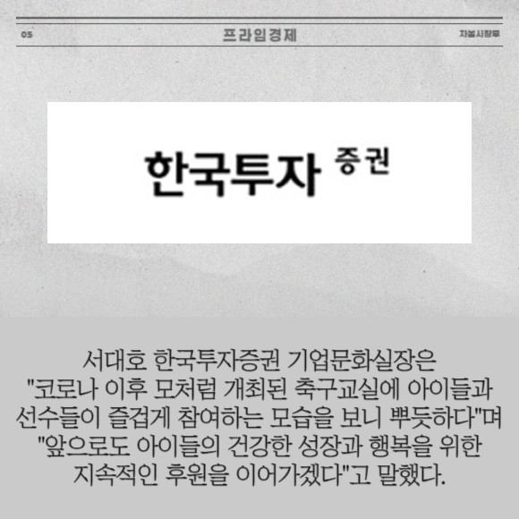 [카드] 한투證 '행복나눔 어린이 축구교실' 개최