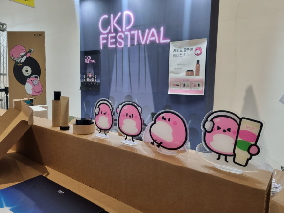 한양대학교 학생들은 씨케이디 개런티드 패키지 디자인에 환경을 위한 작은 실천을 접목시켜 분리배출이 쉬운 디자인을 적용하고, 탄력있는 피부를 형상화한 캐릭터 개발하고 이 캐릭터를 스티커, 키링, 에코백, 티셔츠 등으로 제작해 브랜드를 즐길 수 있는 오프라인 체험공간을 채웠다.