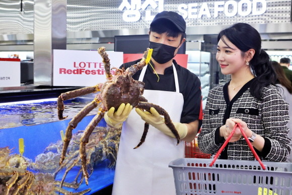 먼저 '레드 킹크랩(100g/냉장/러시아산)'을 행사 카드 결제 시 50% 할인된 가격에 선보인다. '레드 킹크랩'은 레드, 블루, 브라운 3가지 종류 중 살의 단맛이 가장 좋고 생명력이 강해 킹크랩 중에서도 최상급으로 손꼽힌다.