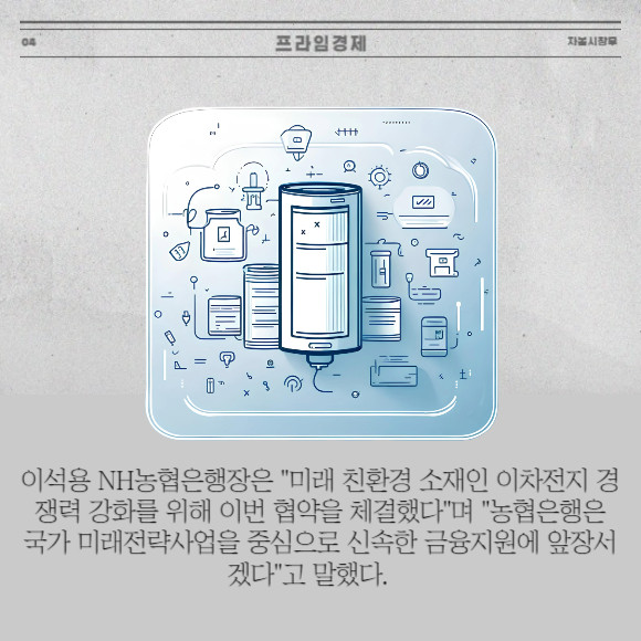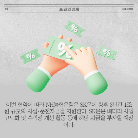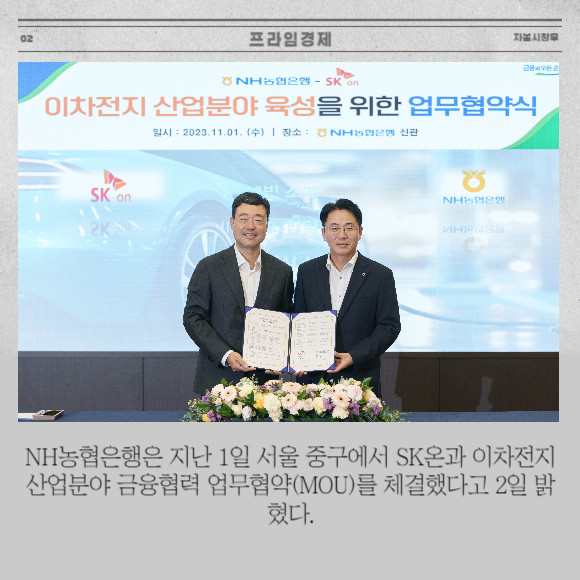 [프라임경제] NH농협은행은 지난 1일 서울 중구에서 SK온과 이차전지 산업분야 금융협력 업무협약(MOU)를 체결했다고 2일 밝혔다.