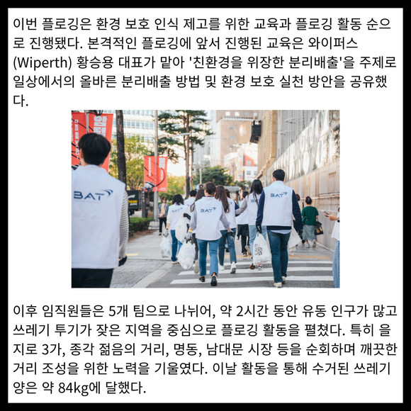 [카드] BAT로스만스, 전 직원 '을지로 지킴이' 변신…환경정화 플로깅