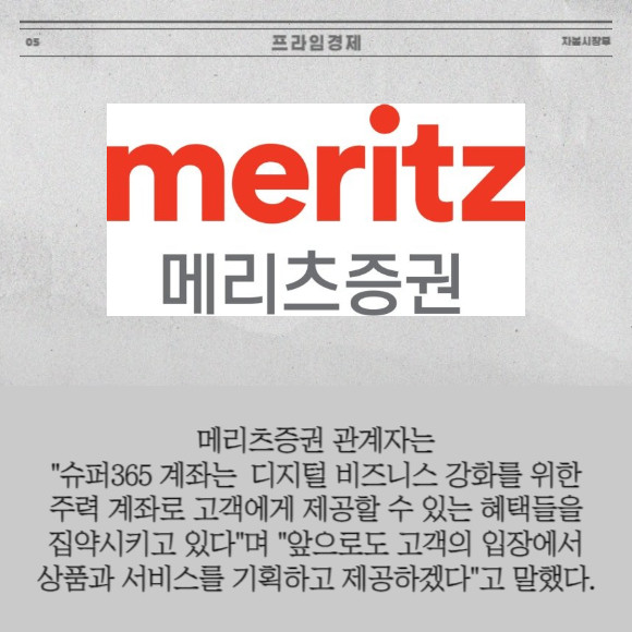 [카드] 메리츠證, 슈퍼365계좌 잔고 2000억 돌파