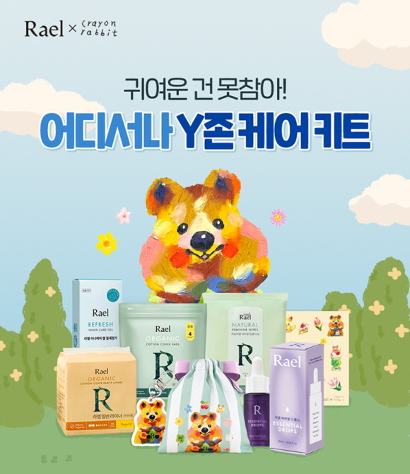 라엘은 다채로운 색감과 독특한 질감의 오일파스텔 그림을 그리는 '크레용 토끼(김은영)' 작가와 협업해 시간과 장소에 상관없이 Y존 건강을 챙길 수 있는 '어디서나 Y존 케어 키트'를 선보인다. '에센셜 드롭스' 세트와 '이너케어 젤 질세정기' 세트 총 2가지 버전으로 출시해 선택 폭을 넓혔다.