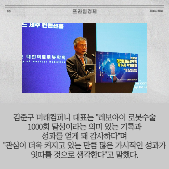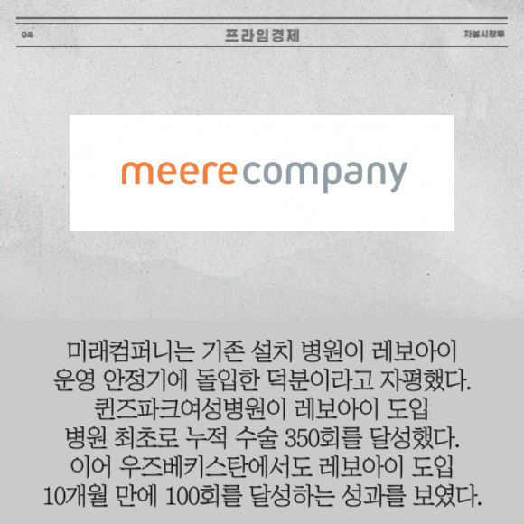 [프라임경제] 미래컴퍼니(049950)는 최근 국산 수술로봇 '레보아이(Revo-i)'를 활용한 로봇수술이 누적 1000회를 돌파했다고 8일 밝혔다.