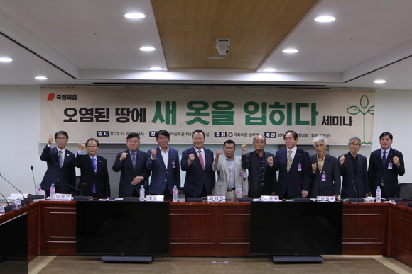 지난 6일 국회위원회간에서 열린 오염된 땅에 새 옷을 입히다 세미나에 참석자들이 기념사진을 촬영하고 있다. ⓒ 프라임경제