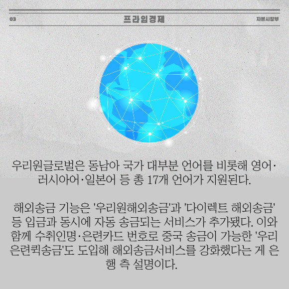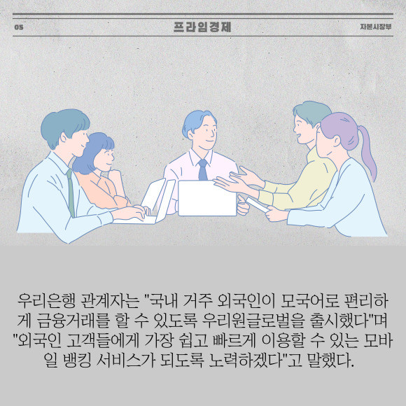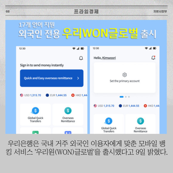 [프라임경제] 우리은행은 국내 거주 외국인 이용자에게 맞춘 모바일 뱅킹 서비스 '우리원(WON)글로벌'을 출시했다고 9일 밝혔다.