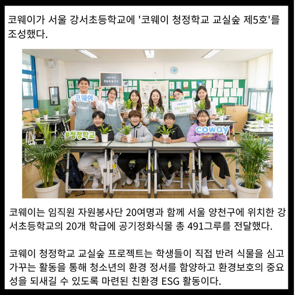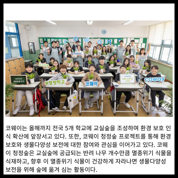 [카드] 코웨이 '청정학교 교실숲 제5호' 조성