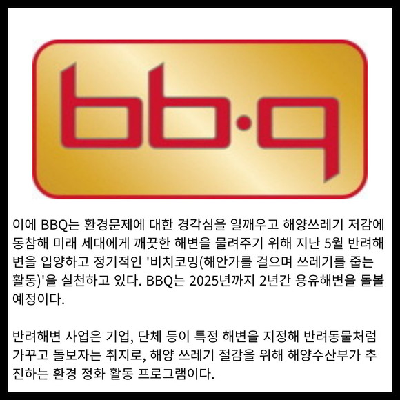 [카드] "건강한 바다 만들기" BBQ, 반려해변 올해 활동 마무리
