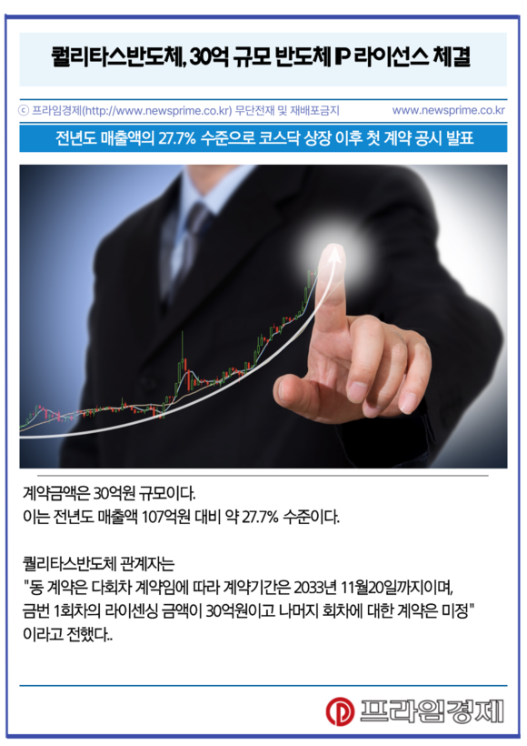 [카드] 퀄리타스반도체, 30억원 규모 반도체 IP 라이선스 체결