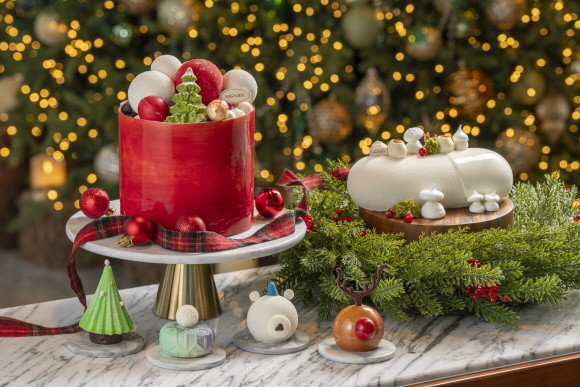 부드러운 코코아 맛과 바닐라 풍미가 조화를 이루는 크림에 향긋한 자스민 무스, 아몬드, 머랭을 올려 눈이 소복이 쌓인 트리가 연상되는 '크리스마스 트리', 크림치즈 무스와 피스타치오 다쿠와즈, 생딸기로 꾸며 크리스마스 원형 트리를 표현한 '크리스마스 리스'를 선보인다. 또 아기자기한 핑거큐〮브 크리스마스 케이크도 함께 구매할 수 있다.
