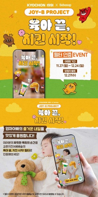이번 이벤트는 베베숲과 교촌치킨의 콜라보 이벤트로, 함께 엄마, 아빠의 즐거운 육퇴 시간을 위해 마련됐으며 12월24일까지 각 브랜드의 인스타그램 채널에서 공동 이벤트로 진행된다.