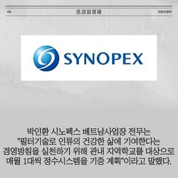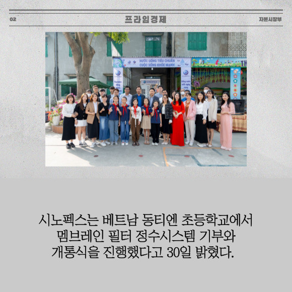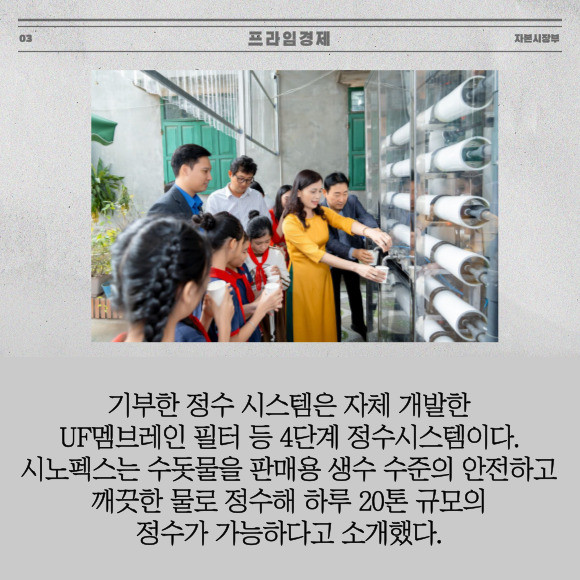 [프라임경제] 시노펙스(025320)는 베트남 동티엔 초등학교에서 멤브레인 필터 정수시스템 기부와 개통식을 진행했다고 30일 밝혔다.