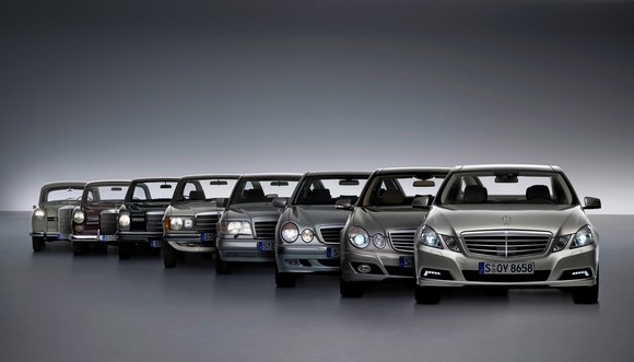 E-클래스 역대 라인업(왼쪽부터 2세대~9세대). ⓒ 메르세데스-벤츠 코리아