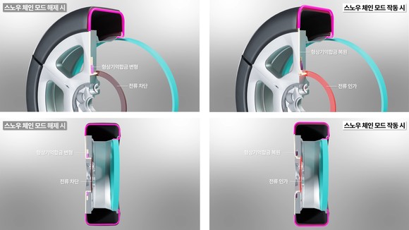 스노우체인 모드 작동 시 구조. ⓒ 현대자동차