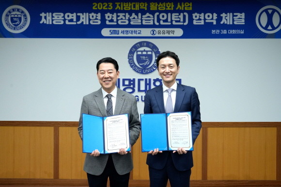 유유제약이 충북 제천에 소재한 세명대학교와 채용 연계형 현장실습 운영을 위한 산학협력 협약식을 체결했다.