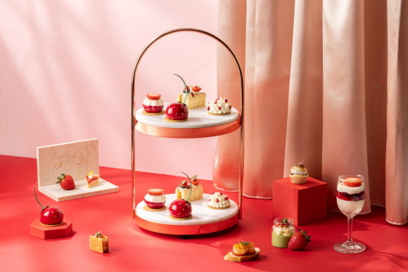 그랜드 하얏트 서울 호텔의 로비 라운지 카페 '갤러리'에서 겨울 제철 신선한 딸기를 마음껏 즐길 수 있는 '스트로베리 세레나데 애프터눈 티'를 2024년 1월2일부터 2월29일까지 선보인다. © 그랜드 하얏트 서울 호텔