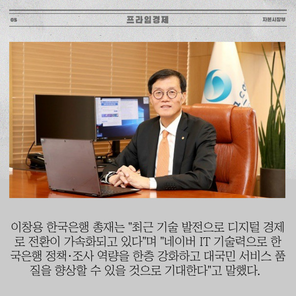 [프라임경제] 한국은행이 네이버와 디지털기술 협력 업무협약(MOU)을 체결했다고 22일 밝혔다.