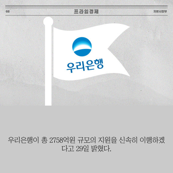 [프라임경제] 우리은행이 총 2758억원 규모의 지원을 신속히 이행하겠다고 29일 밝혔다.