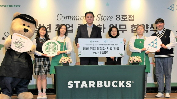 커뮤니티 스토어 8호점 오픈을 기념하며 1월9일 '종로R점'에서 스타벅스 손정현 대표이사, JA 코리아 이은형 대표 등이 참석해 청년 취업 활성화 활동을 위한 업무 협약식 및 기금 전달식을 가졌다. 스타벅스는 커뮤니티 스토어 8호점에서 판매되는 상품 한 개당 300원씩을 적립해 연간 1억 원의 청년 취업 활성화 기금을 조성해 JA 코리아에 전달할 예정이다.