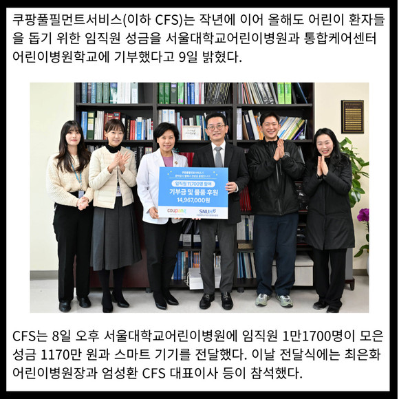 [카드] 쿠팡풀필먼트서비스, 서울대학교어린이병원에 임직원 성금 전달