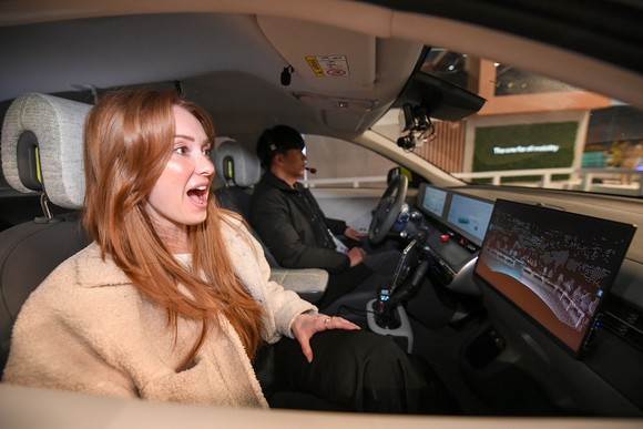 관람객들이 모비온에 탑승해 평행주행과 대각선 주행, 제자리 회전 등을 체험하고 있는 모습. ⓒ 현대모비스