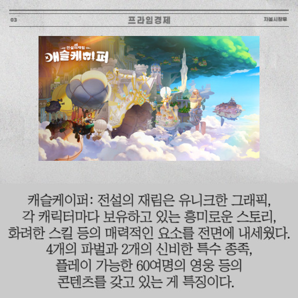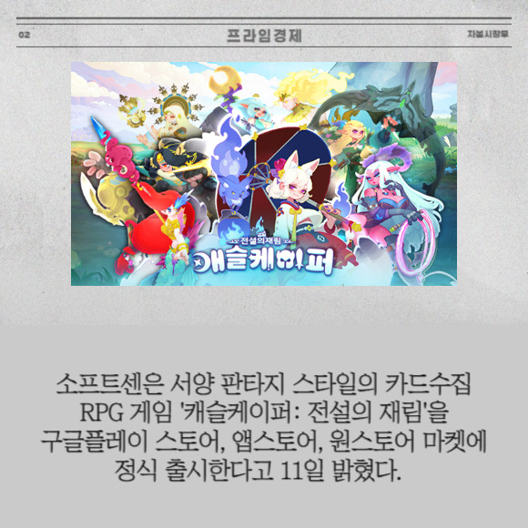 [프라임경제] 소프트센(032680)은 서양 판타지 스타일의 카드수집 RPG 게임 '캐슬케이퍼: 전설의 재림'을 구글플레이 스토어, 앱스토어, 원스토어 마켓에 정식 출시한다고 11일 밝혔다.