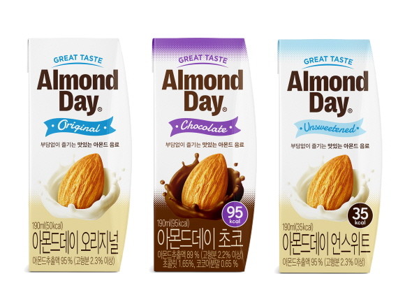 아몬드데이는 원재료의 깊은 맛을 강조한 '오리지널', 당과 칼로리를 줄여 더욱 가벼운 '언스위트', 진한 초콜릿 맛을 느낄 수 있는 '초코' 등 세 가지로 구성돼 있다.