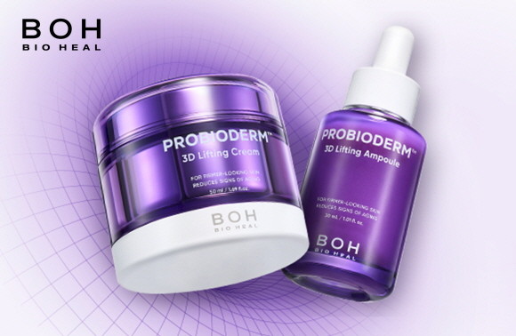바이오힐 보의 대표 상품군인 '프로바이오덤'의 3D 리프팅 크림과 앰플 제품 이미지. © CJ올리브영