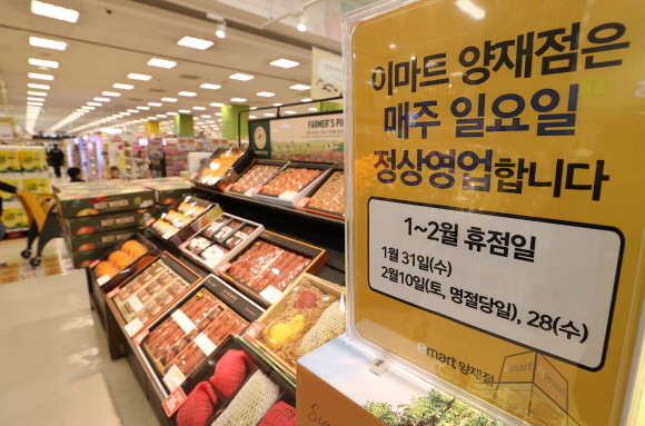 서울 서초구의 대형마트는 매주 일요일에 정상영업하고 둘째·넷째 수요일에 쉬는 것으로 의무휴업일을 전환한다. © 연합뉴스