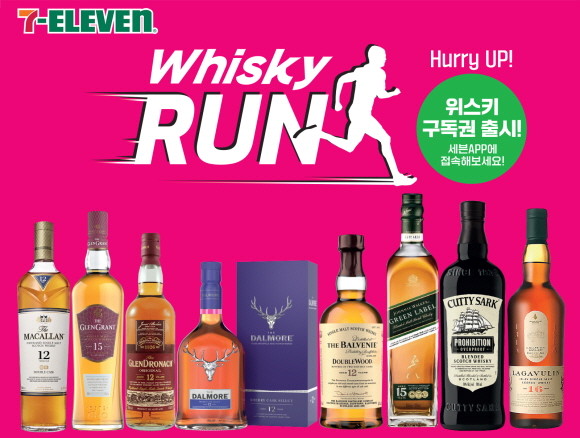 세븐일레븐은 8종의 인기 위스키에 대해 편의점 사상 최대 물량을 준비하고 2월 한달 간 '위스키런' 행사를 진행한다.