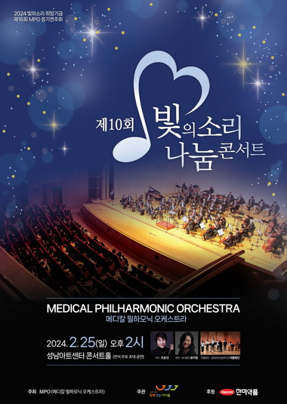 한미약품과 MPO는 오는 25일 오후 2시 경기 분당구 성남아트센터 콘서트홀에서 '제10회 빛의소리 나눔콘서트'를 개최한다.